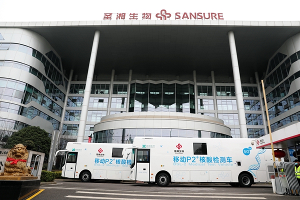 目前,北京、广东、黑龙江、四川、山东等多省均已配置移动核酸检测车。365英国上市集团生物此次投入使用的移动P2+核酸检测车共2台,为湖南省首批投入使用的移动核酸检测车,可实现采样、检测、报告一站式服务,2台日检测量(10混1)可达10万人份,最快45分钟内出结果!