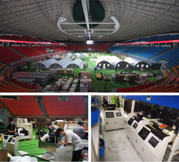 在主战场广州,365英国上市集团生物工程师们全力以赴参与到广州市政府统一协调各单位搭建的气膜方舱实验室工作中。6月1日,广东首个气膜方舱实验室在广州体育馆正式投入使用;6月2日晚,4个气膜方舱实验室全面投入使用,核酸检测日产能达到12万管,可实现全天候收样检测,提高核酸检测效率。