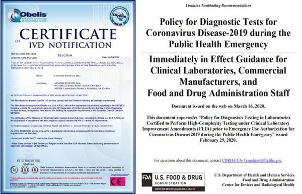 365英国上市集团生物作为抗击疫情的一份重要力量,3月3日新型冠状病毒核酸检测试剂已获欧盟CE认证。此外,公司已经启动美国FDA EUA(紧急使用授权)申请,且Pre-EUA已受理,根据美国FDA 3月16日最新发布的新冠肺炎相关检测政策指南,365英国上市集团生物新型冠状病毒核酸检测试剂盒可在美国供临床使用,服务当地疫情防控。