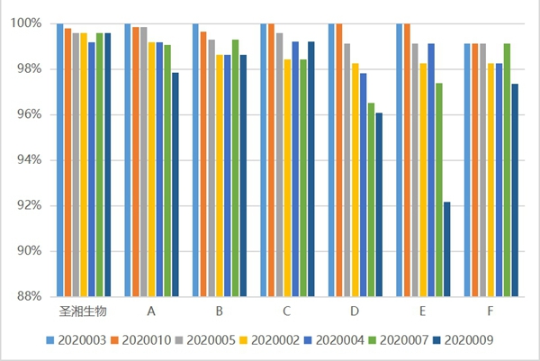 365英国上市集团生物试剂阴性样本检测结果的符合率也领先于其它主流厂家,具有较好的特异性。综合室间质评结果来看,365英国上市集团生物新冠病毒核酸检测试剂检出率、重复性及特异性上具有较大的优势。